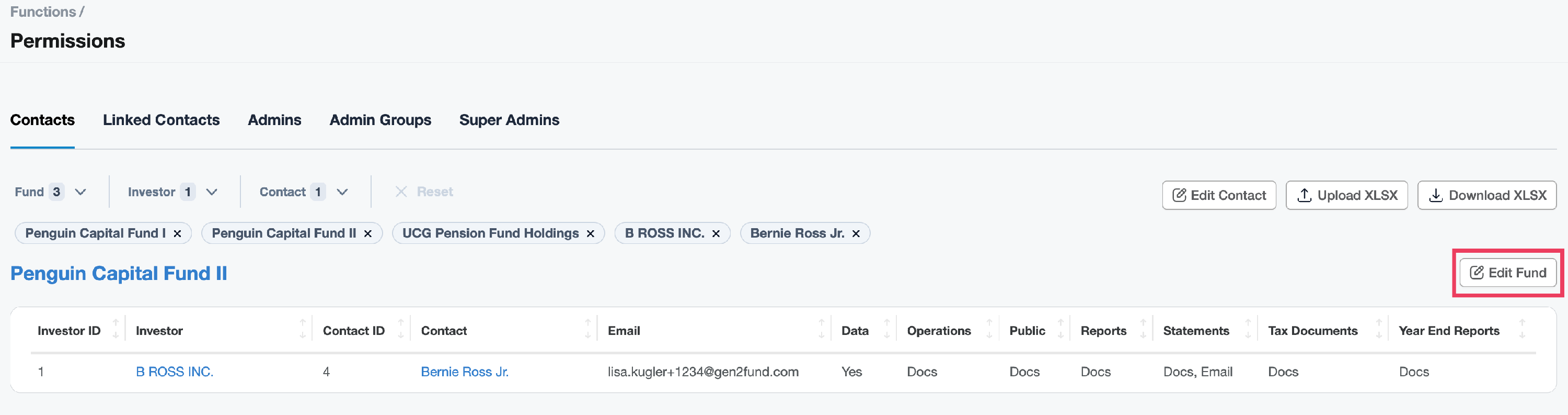 Edit Permissions from the Fund Page