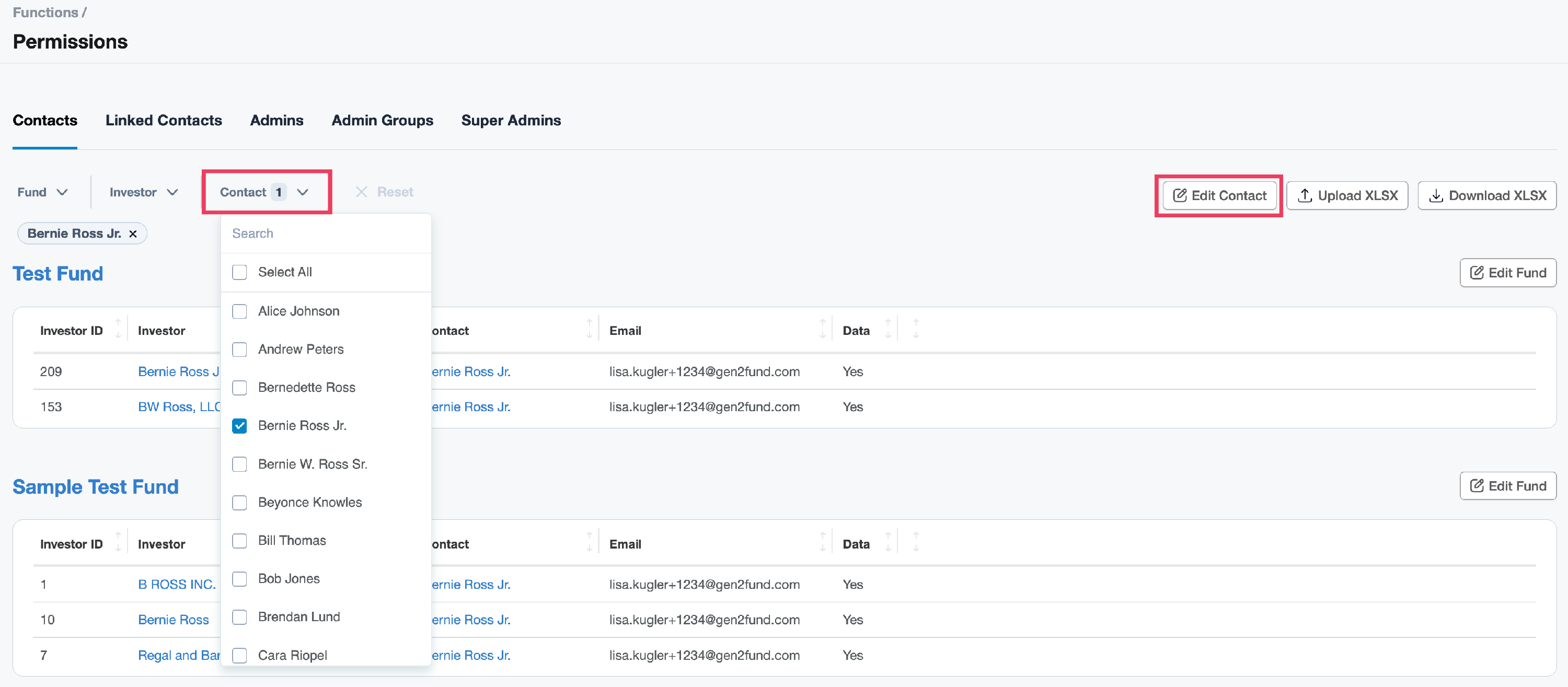 IMPORTANT: This workflow only allows you to edit permissions for one contact at a time, for all of the contact's related funds.