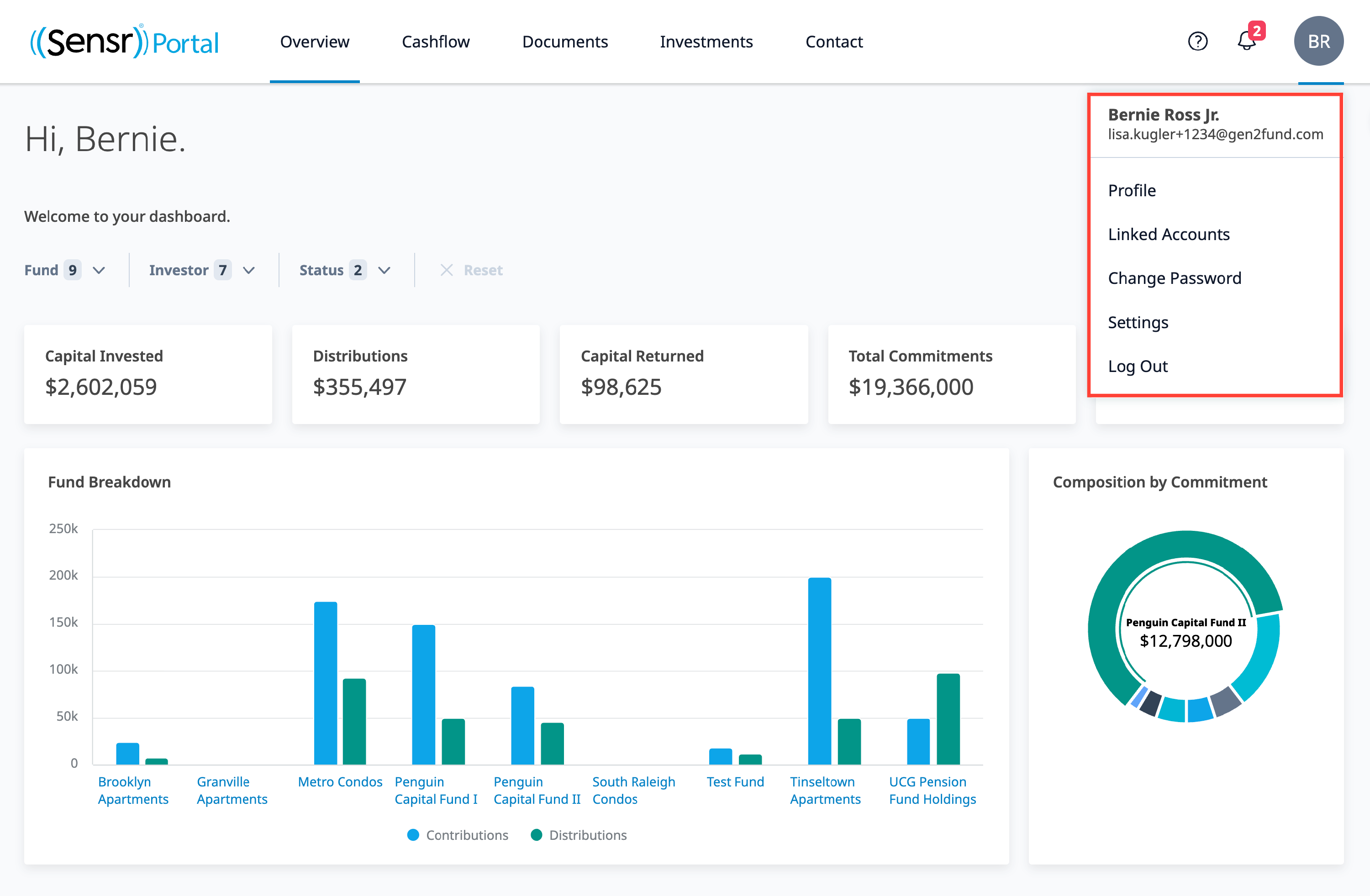 You can manage your profile details under the Profile Menu located in the upper right corner of the Investor Portal. Here, you can review your information and make any changes needed, as well as upload files, enable Two-factor authentication, and set your email update preferences.