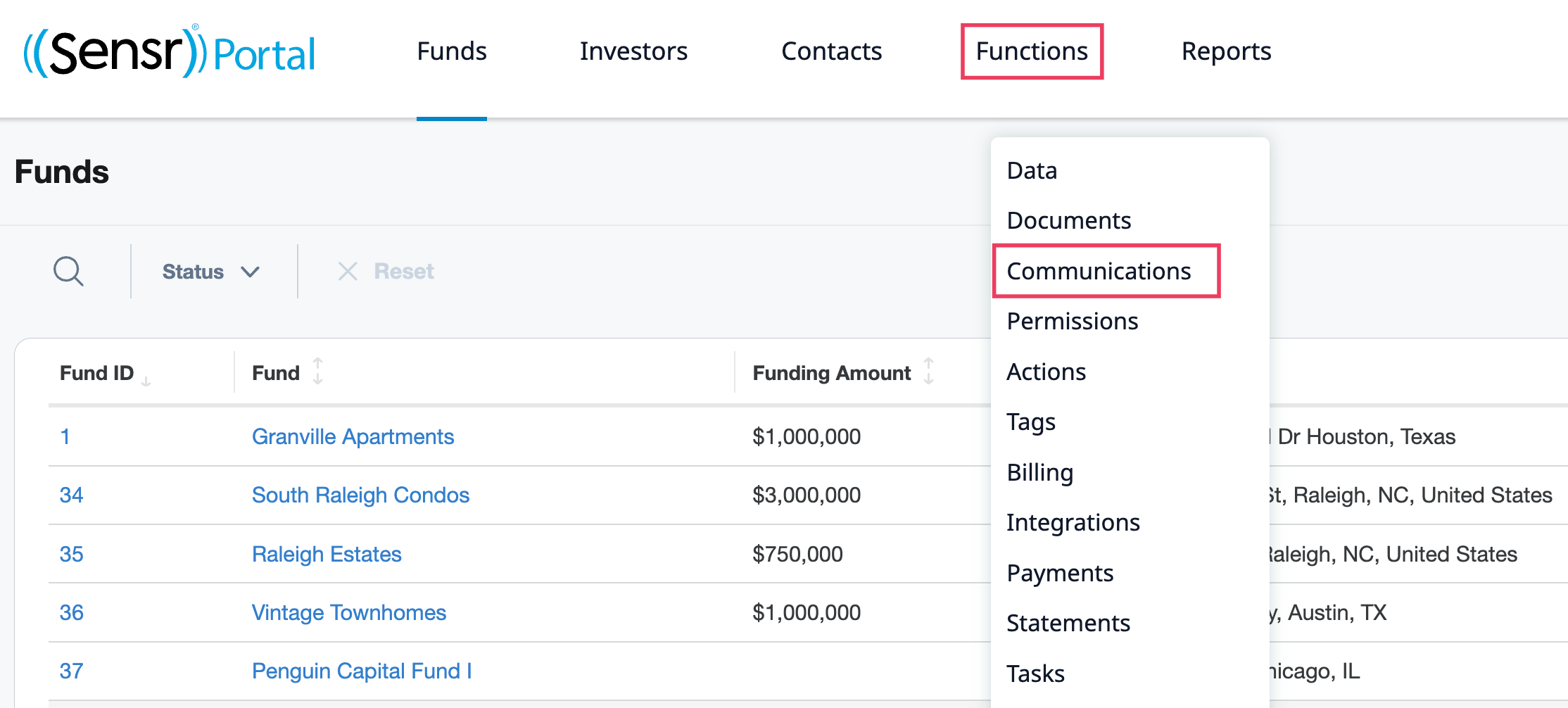 Navigate to Communication page located under the Functions menu.