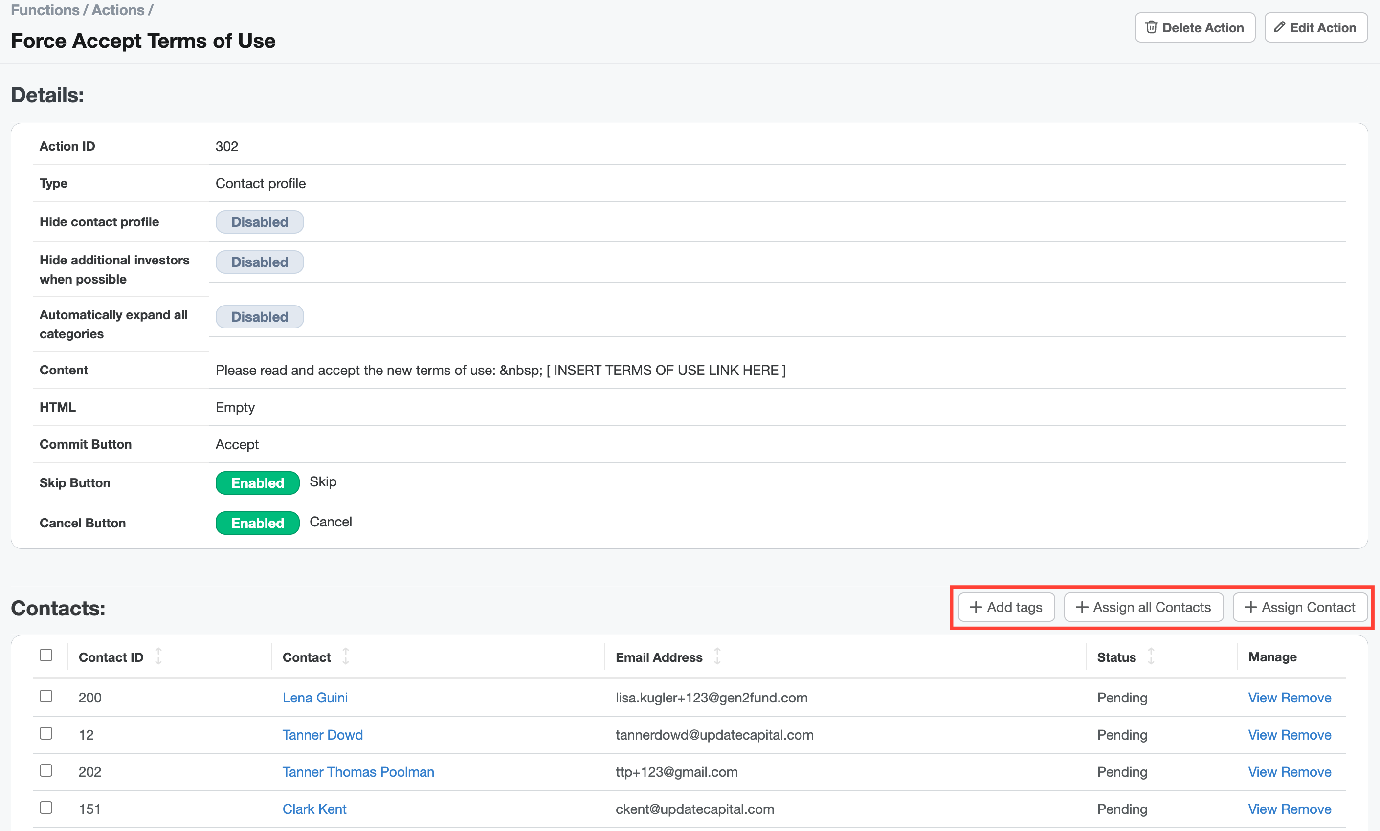 - +Assign all Contacts - assigns the action to all contacts
