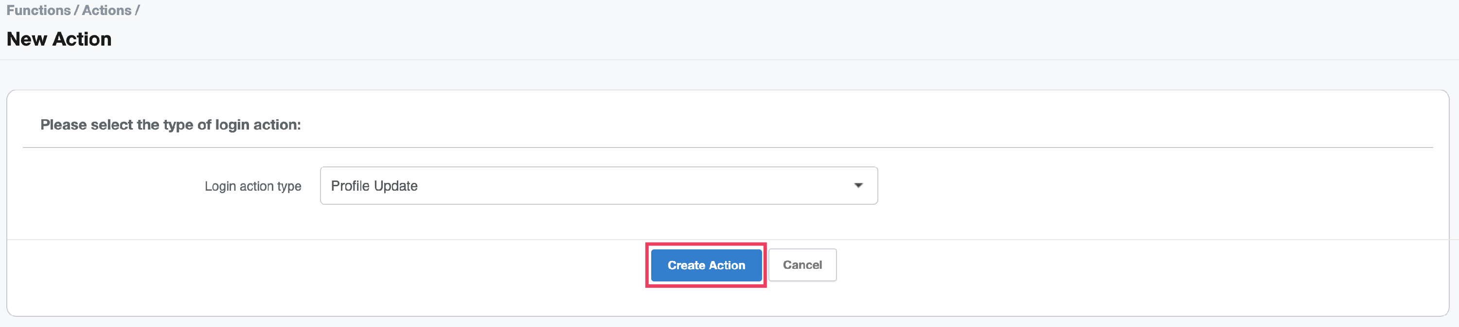 - Select Profile Update from the drop-down list, then click Create Action.