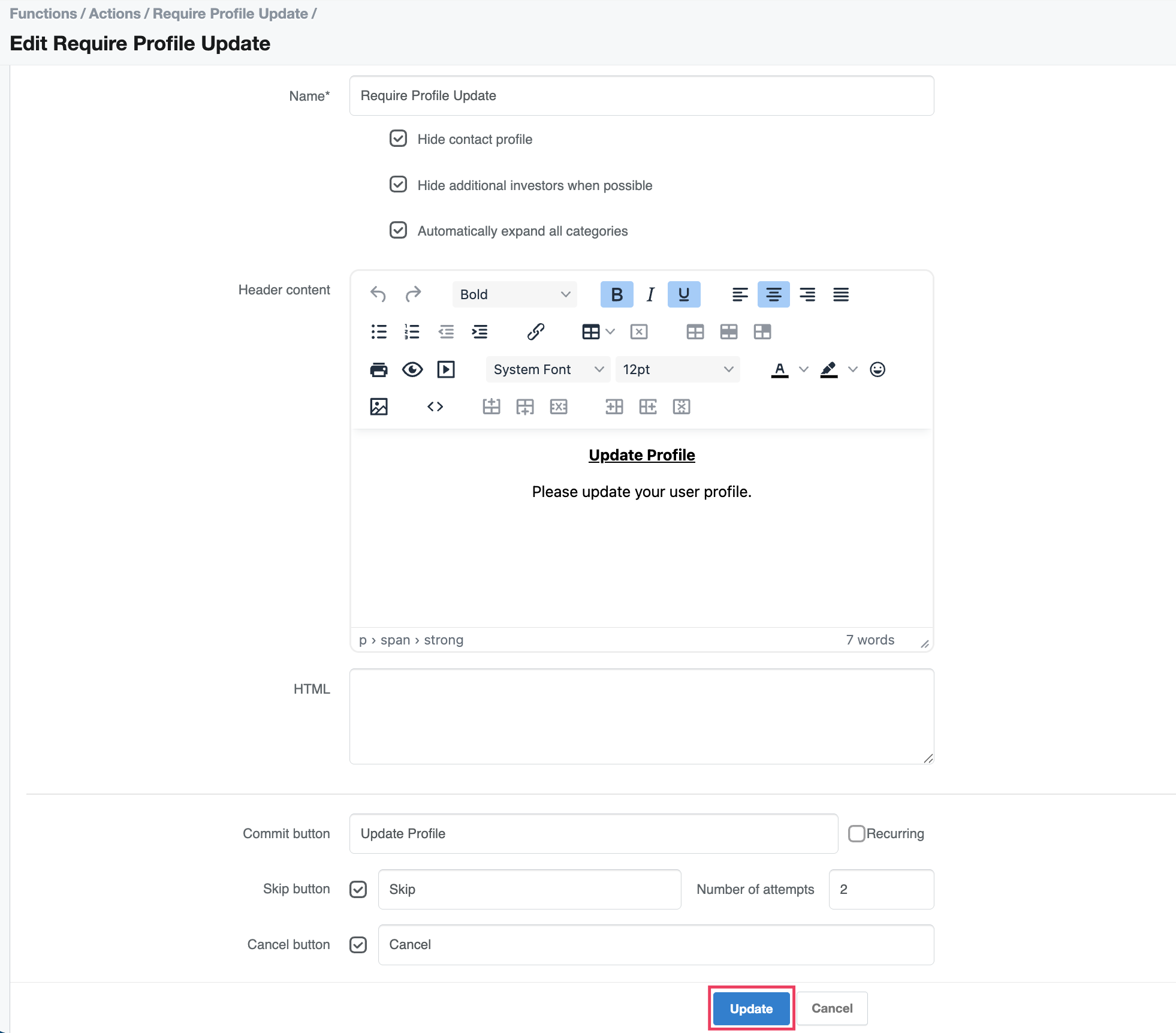 Profile Update Actions
